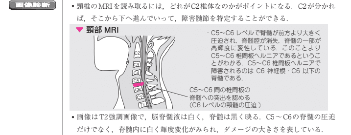 頸椎MRIの画像から、当てはまる記述を選ぶ問題です。